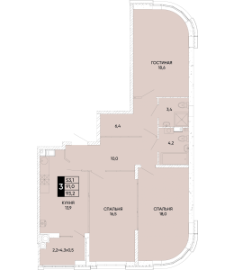 3-комнатная 93,2 м2